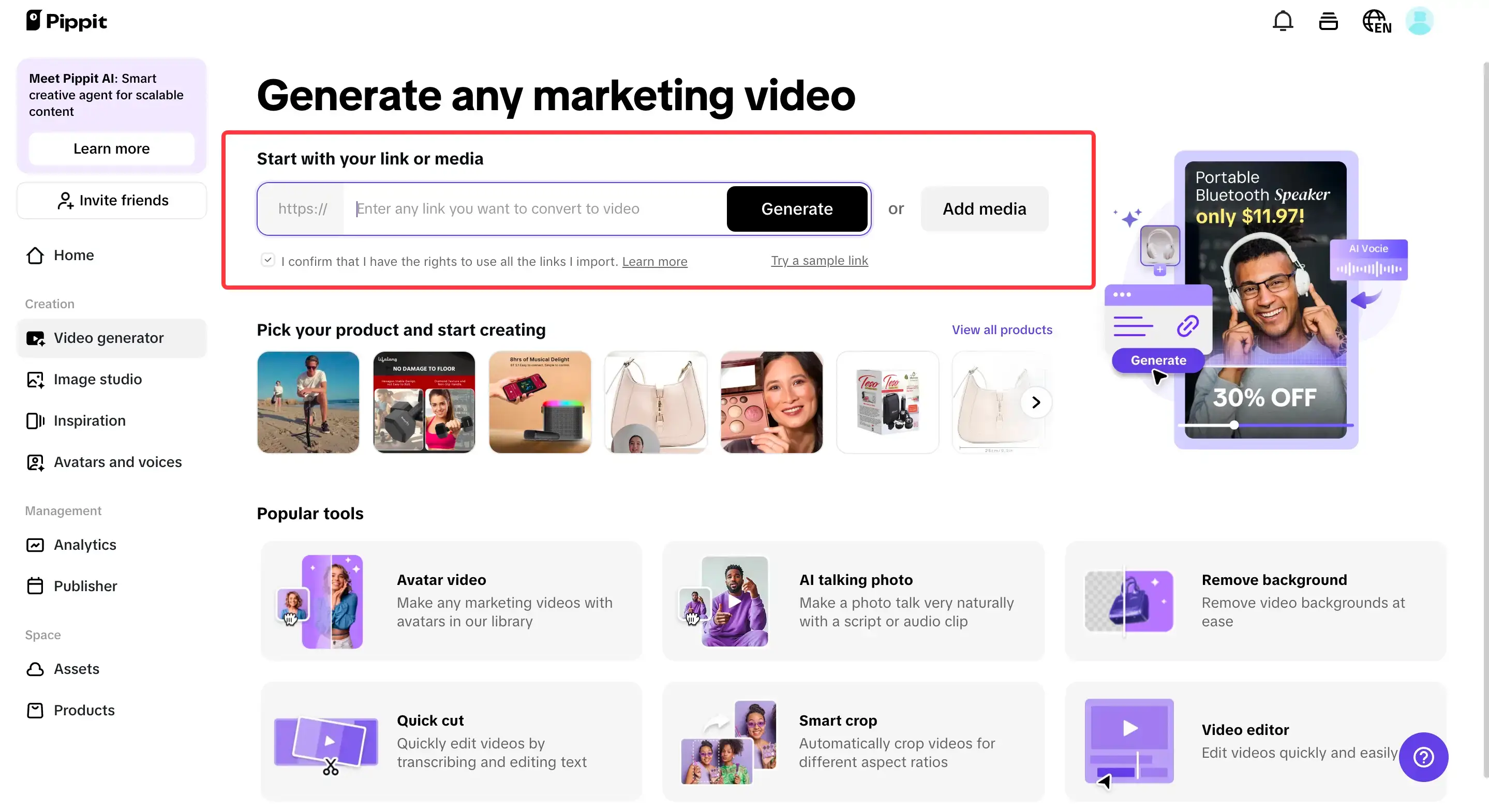 • One-Click Video Solution: Quickly transform product links or visuals into engaging marketing videos.