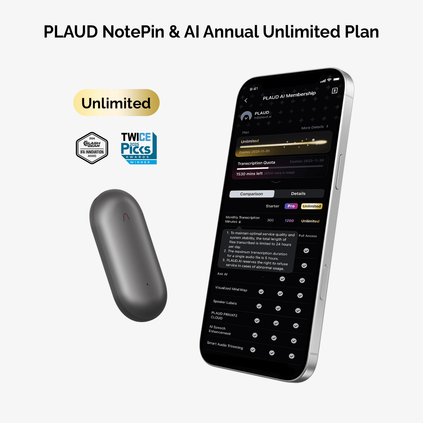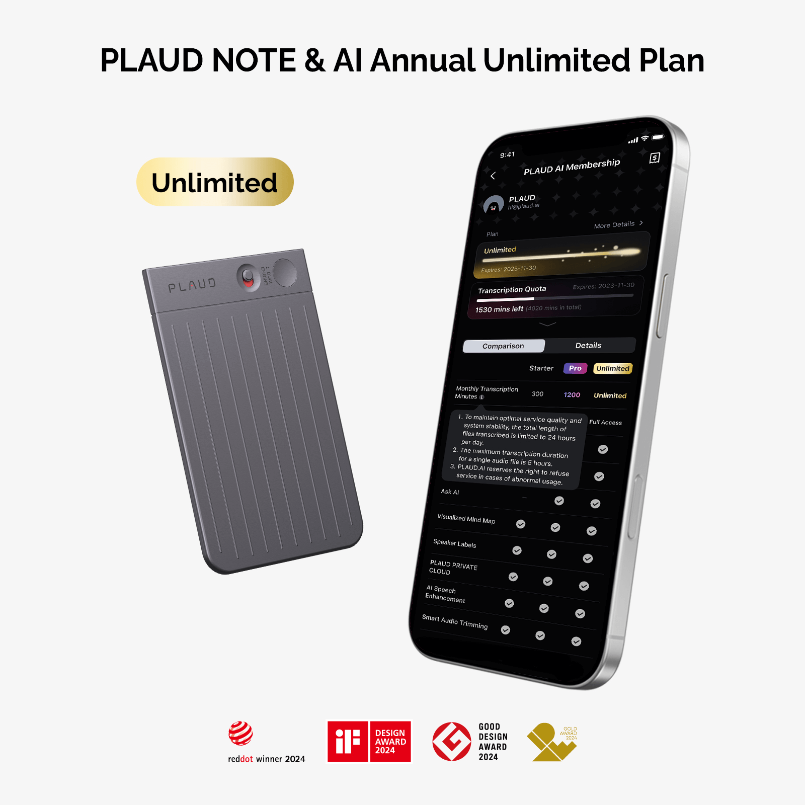 • PLAUD AI Annual Unlimited PlanPLAUD AI Annual Unlimited Plan