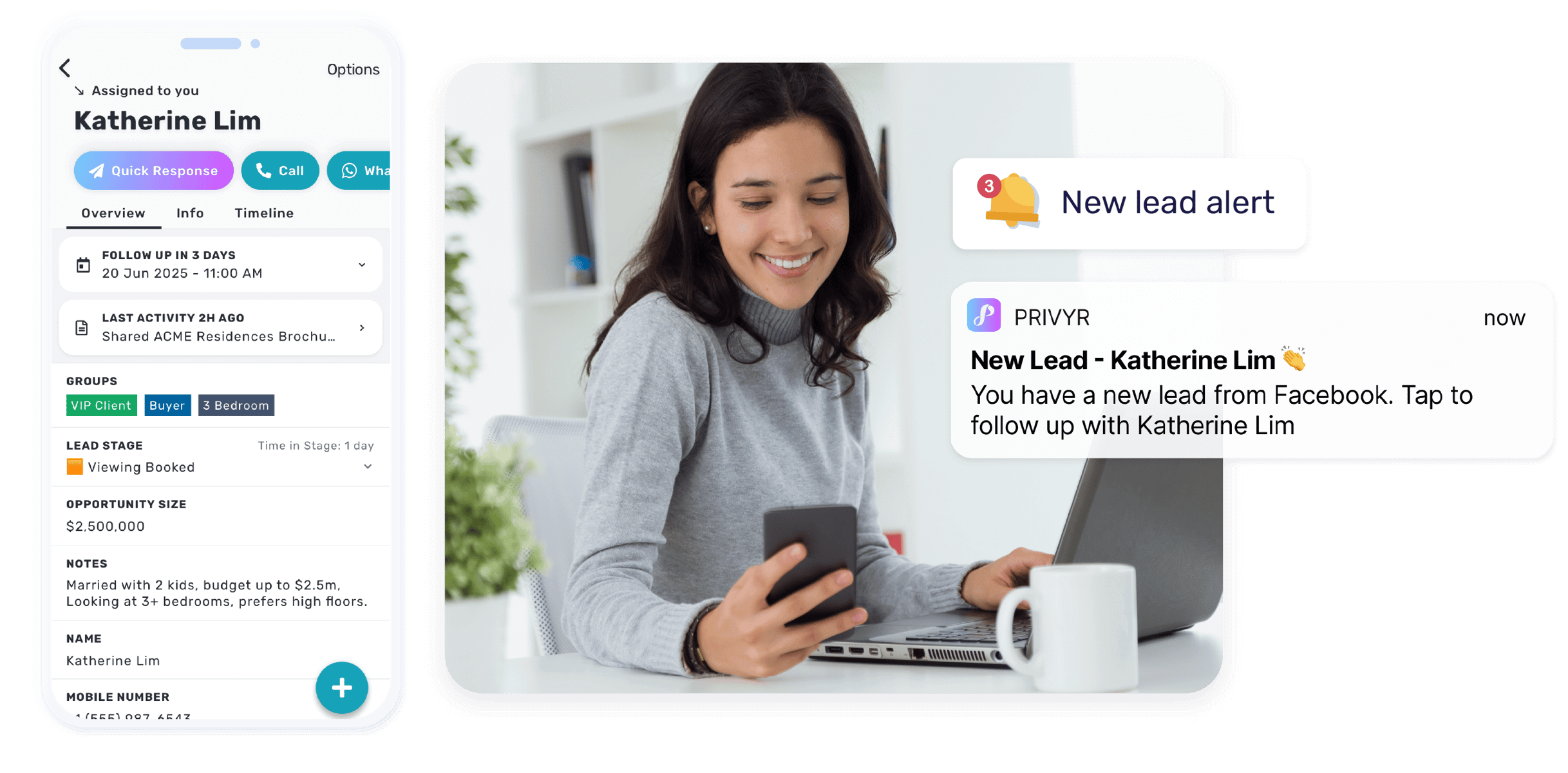 Mobile-first lead engagement system / mobile CRM for sales teams