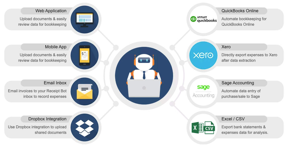 Receipt Bot, an AI-powered bookkeeping automation platform that extracts and categorizes data from invoices, receipts, and bank statements—seamlessly integrating with QuickBooks Online, Xero, and Sage.