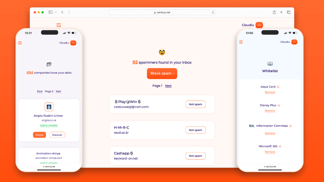 Sentrya helps you remove your personal data from the web and block scams and spam emails, keeping your inbox clean and secure.