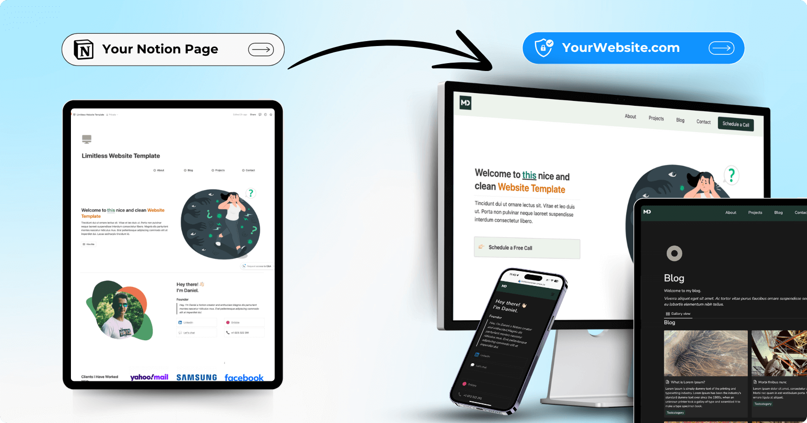 Works with Notion's Free Plan: Whether you're using Notion for free or on a paid plan, you can build websites effortlessly.
