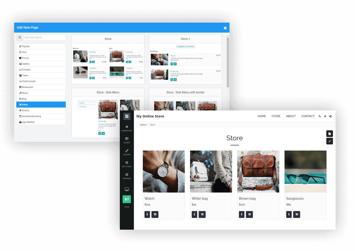 SITE123 is a website builder with an intuitive interface and lots of time-saving features, ideal for personal websites or small businesses. The build-up process can be as easy as selecting a design, adding content and publishing. Before you begin customizing the template, you can choose from designs in several categories such as online store, business, blog, event, or restaurant, and then add your website name.