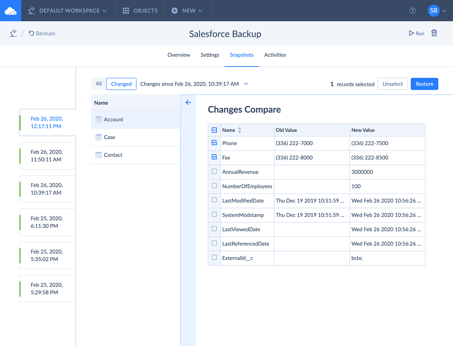 3. Monitor your backup and restore operations. You can see data changes between backups and easily find the necessary data in a backup.