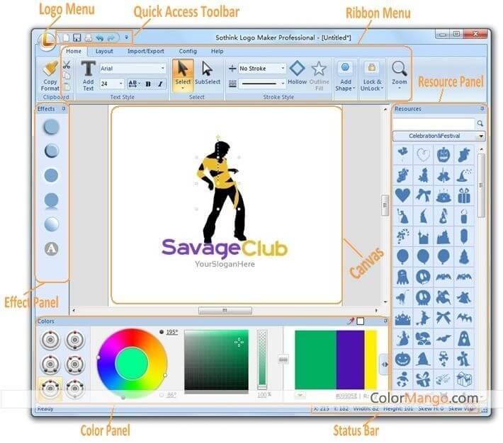 What’ more, you can apply graphics, designs, shapes and color schemes to create your own logo.