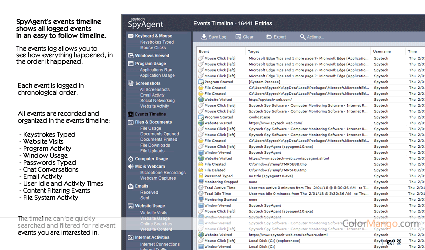 SpyAgent is a powerful solution, which can record everything that happens on your computer. Spytech SpyAgent can record all key input, email, the application used, internet connection, chat, password, print job, file viewing, microphone audio, camera image, mouse click, and screen recording. Simultaneously, it can filter out harmful websites and applications, which is more suitable for parents to restrict their children's online behavior.