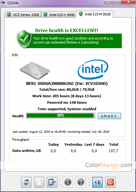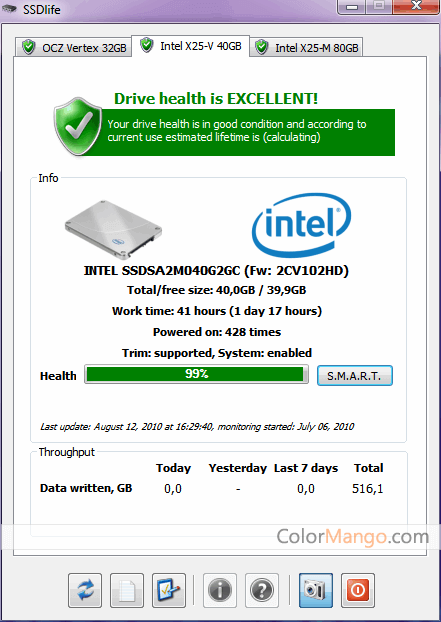 SSDLife is a very useful hard drive inspection tool that can quickly detect information about your SSD hard drive. For example, it can detect the usage time, the "health" information, and the rest of the life of your SSD. In addition, it can display complete and detailed information about your SSD, such as the manufacturer and model of the drive.