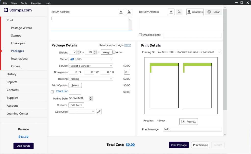 Print USPS and UPS shipping labels online with discounted rates—no trips to the post office.