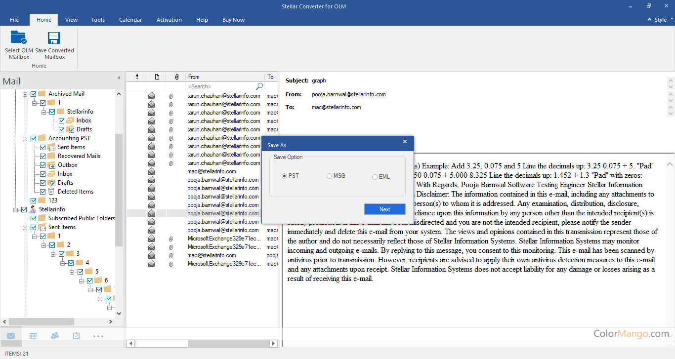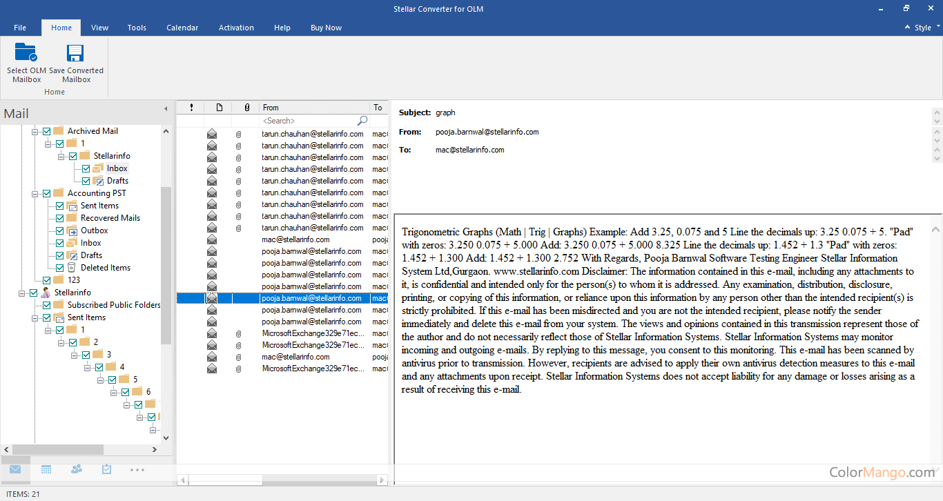 Convert all OLM mailbox items, such as emails, attachments, contacts, etc.