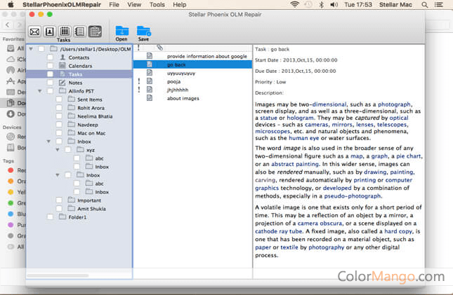 Stellar Repair for OLM is a useful OLM file repair software that is used to repair damaged MS Outlook for Mac 2011 and 2016 backup files. It repairs email calendars, address books, tasks, diaries, and other inaccessible mailbox items and creates a .rge file in a predefined location. You can import mailbox items in Outlook from this rge file.