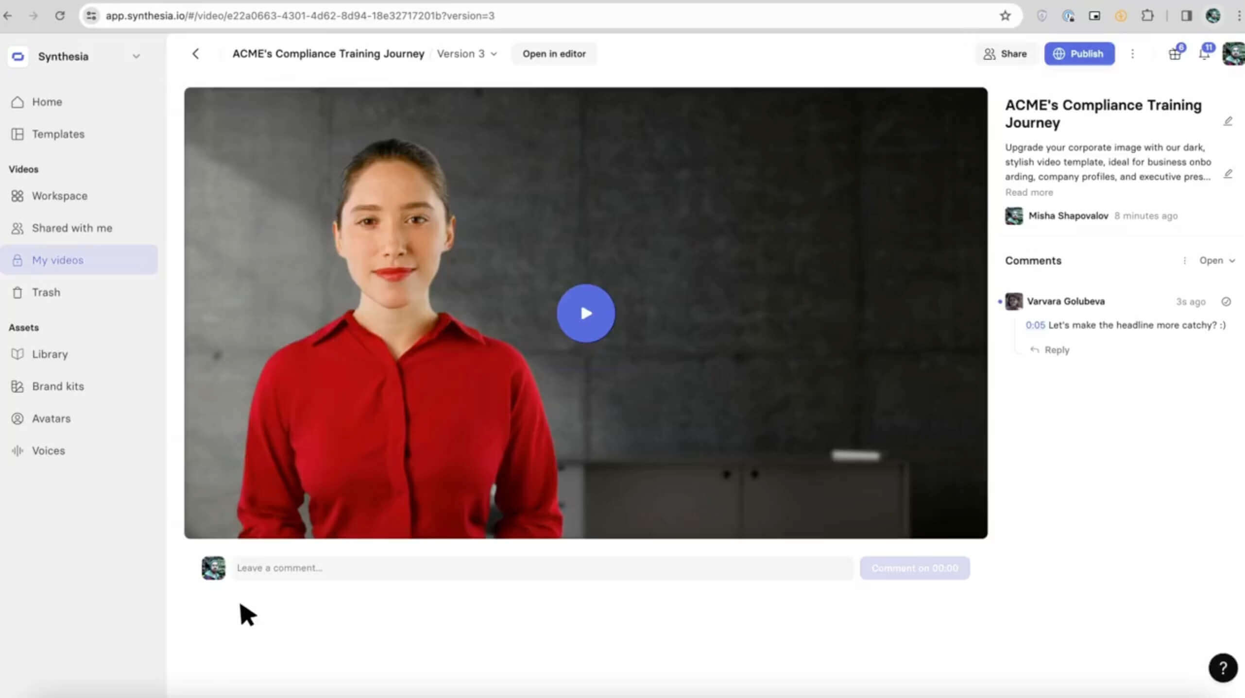Using Synthesia is as simple as "choosing a template, selecting a presenter, and entering text" - requiring almost no additional learning beyond these three steps. It is designed to be easy to use for anyone.