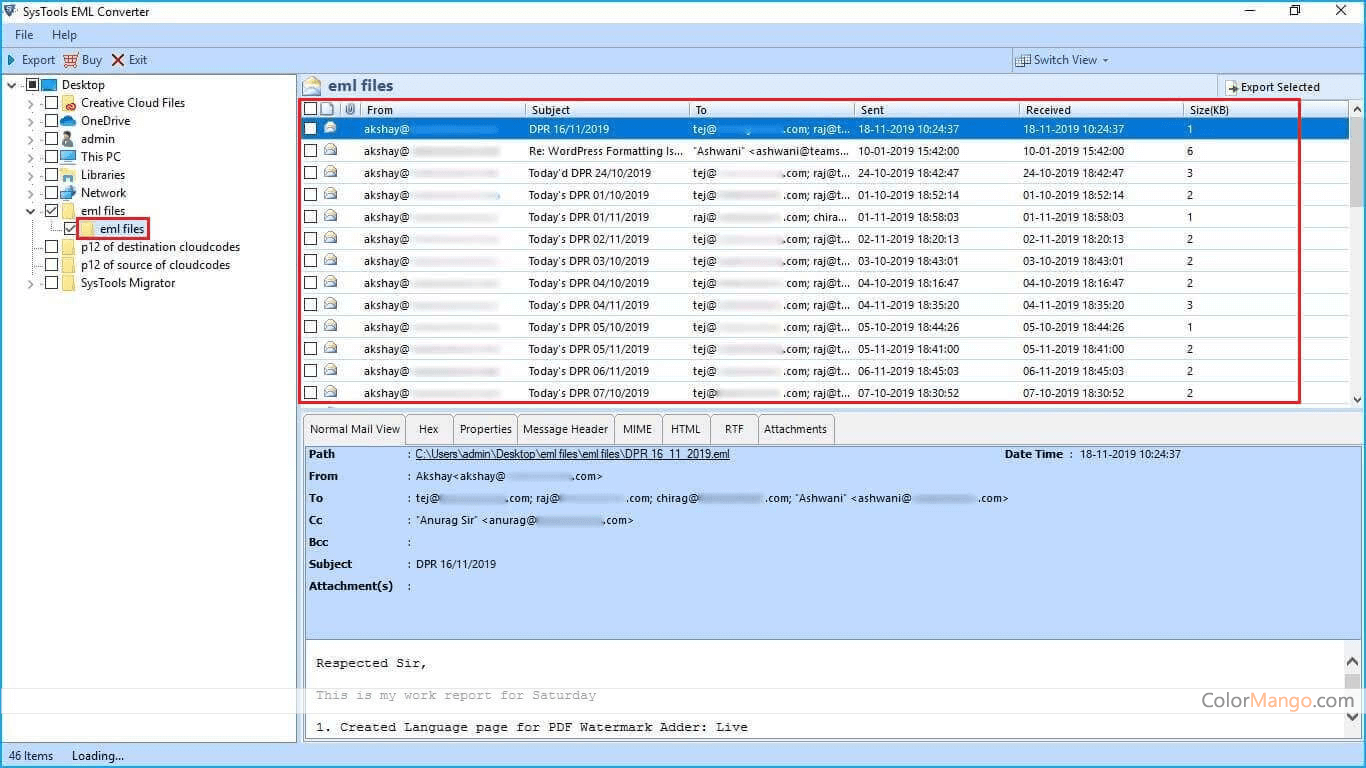 Export Multiple EML Files to HTML, PDF, MHT, TXT