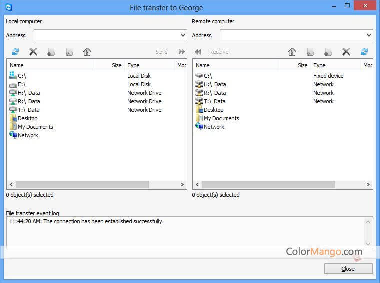 When the first running TeamViewer, it will automatically generate a ID and password. You need to enter your connector’s ID and password to control his computer as easy as control your computer. There is a control window in your connector system panel. You can view the access information, both of you and connector can contact by voice or end the connection. Team Viewer can switch between the master and controlled connector at any time. It’s very easy to use, only by telling your ID and password to your connector.