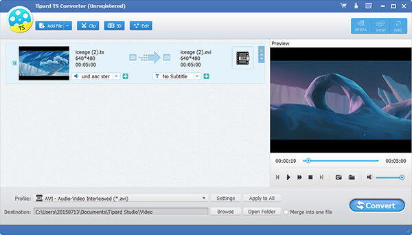 Convert TS files into HD video files like AVI, MP4, WMV, MKV, etc.