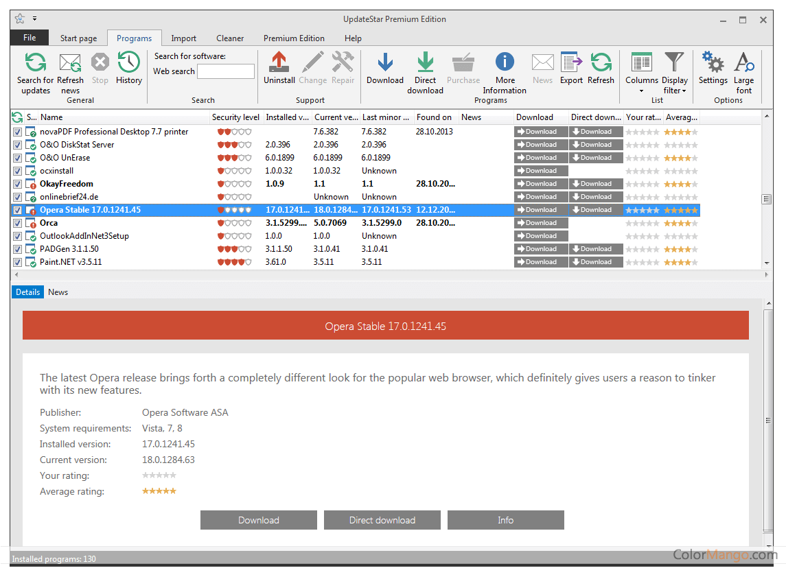 UpdateStar displays the software version and the latest version installed in the current system after running and provides the download link of the newest version directly. Detailed information and related news of the latest version are also offered at the bottom of the interface.