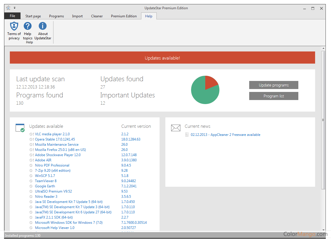 UpdateStar can help you find the latest version updates of free software, shareware, and commercial software. It claims to help users check 80,000 pieces of software at one time, saving a lot of time.