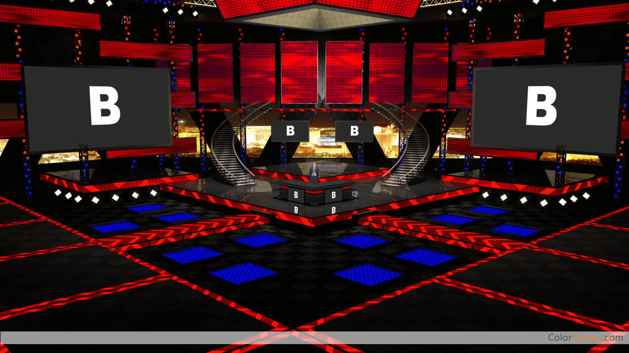 Virtualsetworks Package One for Wirecast is a collection of six virtual sets specifically designed for use as a Wirecast multilayer virtual set. These sets are configurable through a number of layers that can allow you to change the background, place video into screens, and place the talent behind desks. These sets will give you the ability to present a professional studio to your audience with only a greenscreen background to chroma key off of.
