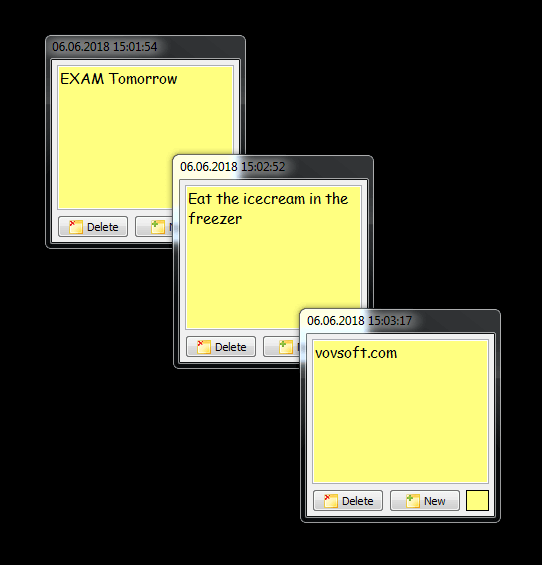Vov Sticky Notes is a tool for you to set up notes on your computer. You can see the notes on your desktop when you start your computer, so you remember your work tasks better!