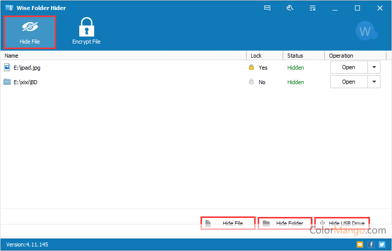 Wise Folder Hider Pro adopts a very advanced encryption algorithm, which can encrypt your files, effectively ensuring your privacy and security, and even provides a more advanced secondary encryption, placing files in the encrypted folder of the software and setting passwords again, which is more secure.