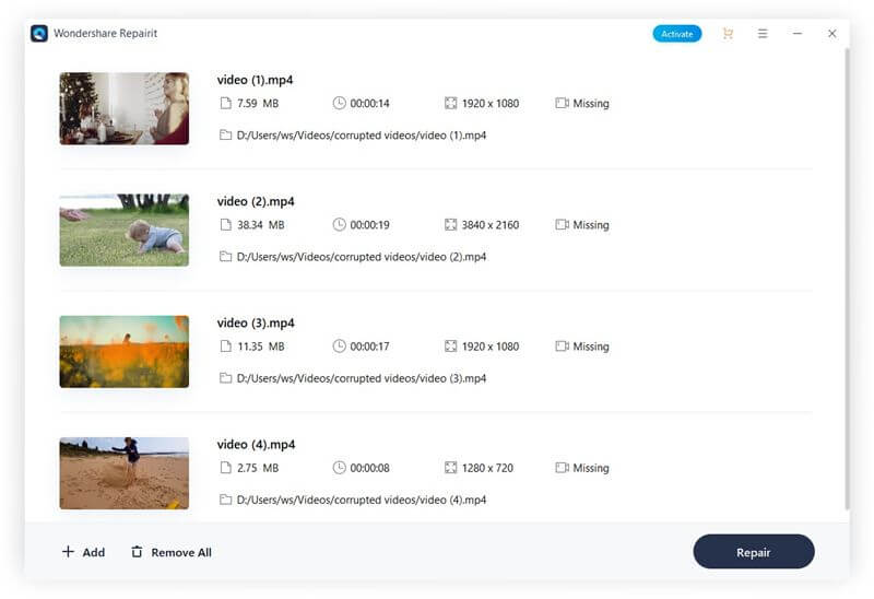 Wondershare Repairit is a professional and powerful video file corruption repair software. It has practical and convenient, easy to operate, convenient, and fast to use features. Just 3 simple steps can help you repair damaged video files in a few minutes. It supports repair video metadata, index, header, parameters, and other issues. And it also supports repair video quality problems, such as black screen, lag, audio out of sync, etc.