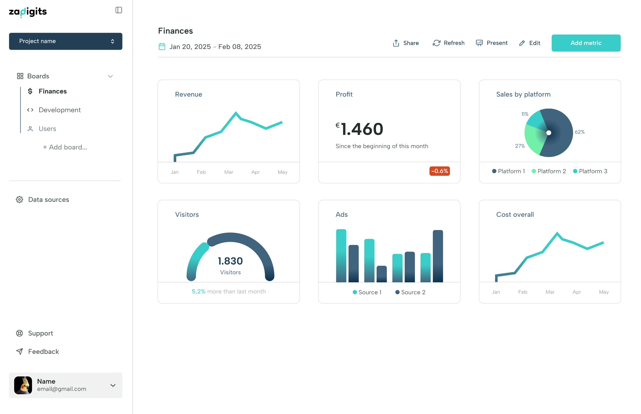 No-code dashboard and analytics platform built for startups, solo founders, and small teams