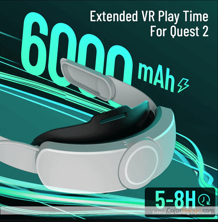 3. Extended Battery Life: The built-in 6000mAh battery extends the battery life of your Oculus Quest 2 headset, allowing you to enjoy longer VR sessions without interruptions. The battery easily attaches to the back of the head strap and provides power to your headset.